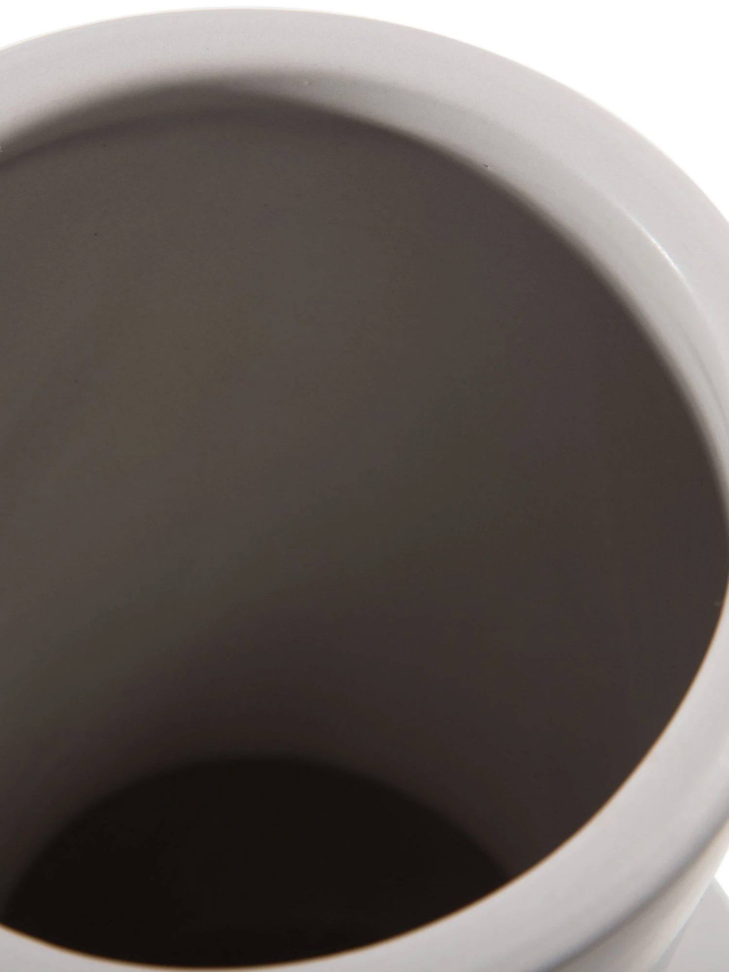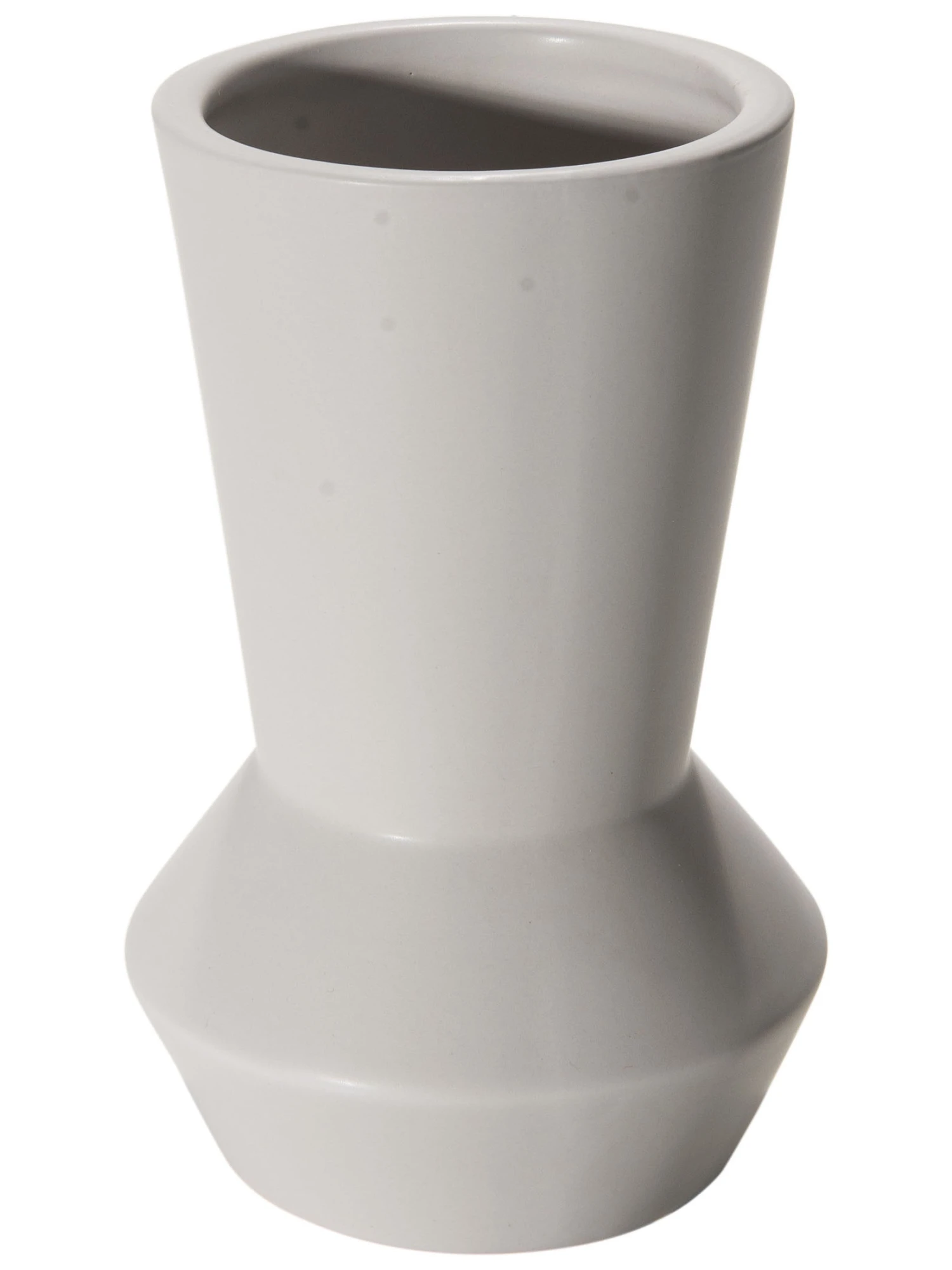 Kleine Keramikvase in dezentem Hellgrau und extravaganter Form.