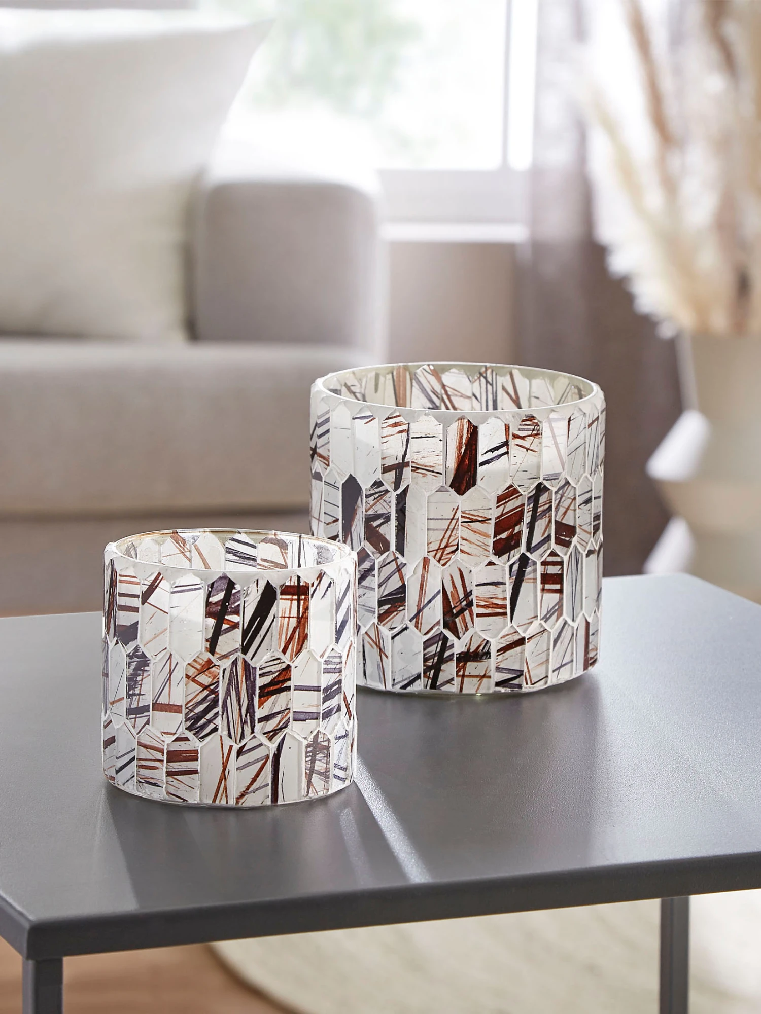 Äußerst dekorativer Teelichhalter mit Mosaik aus Glas.