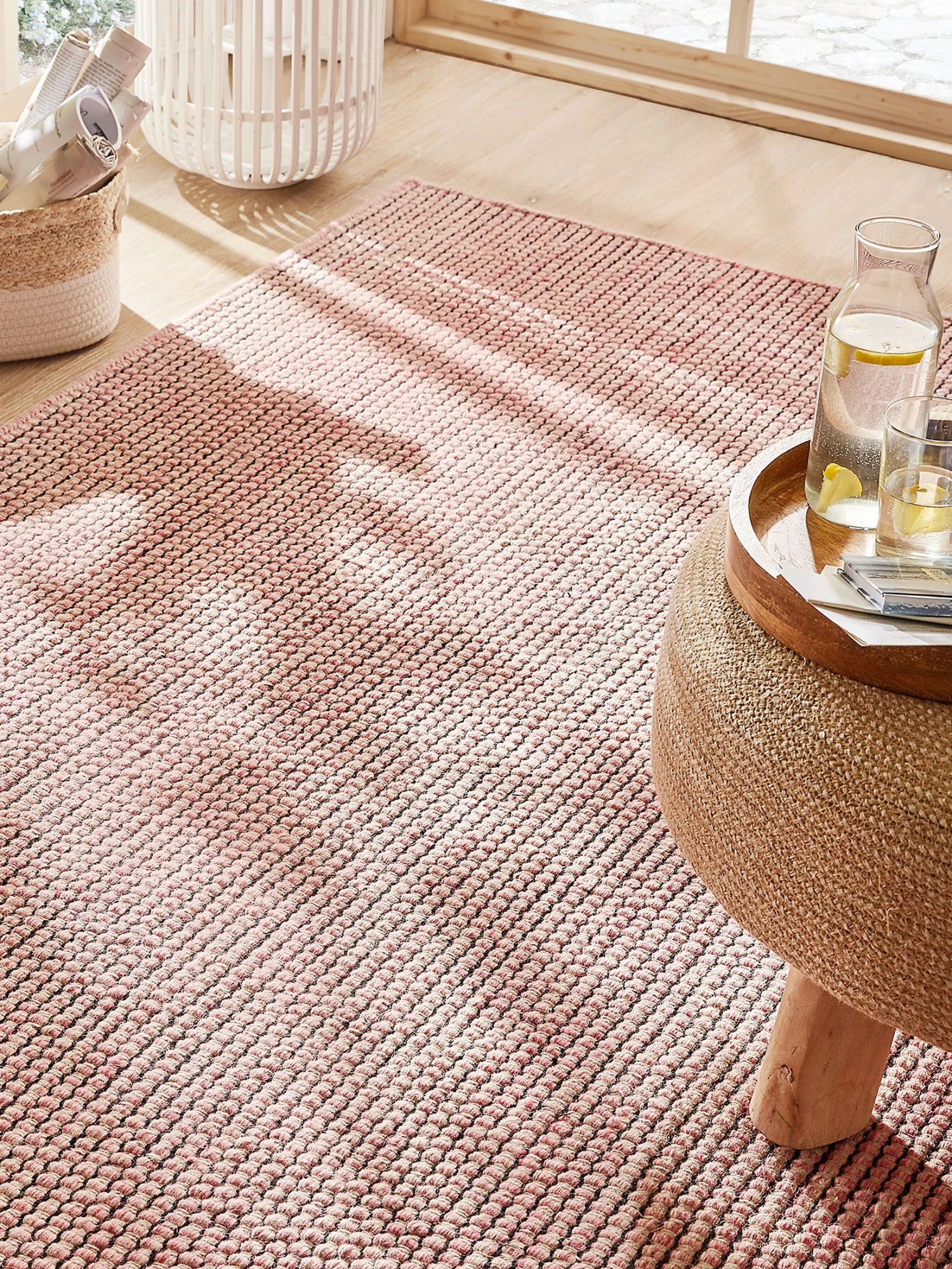 Klare Form und natürliche Materialien bilden den Charakter dieses Handwebteppichs. Sein fester Flor aus